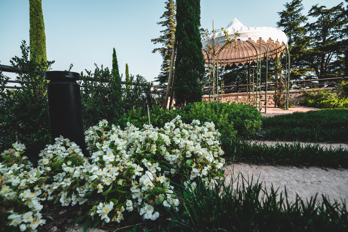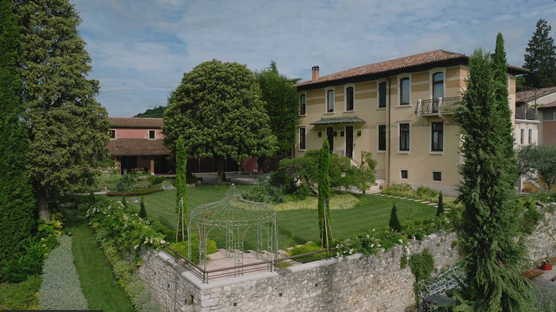 Il giardino si presenta sulla destra da un vialetto di ingresso a piedi che accompagna alla villa.